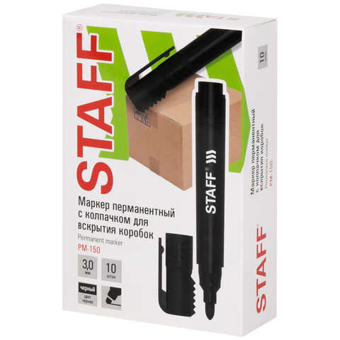 Маркер перманентный черного цвета обладает круглой формой корпуса из пластика, диаметр которого 18 мм. Уникальный колпачок оснащен насечкой для вскрытия коробок, что делает маркер незаменимым помощником как на складе, так и при проведении внутренних работ в доме или переезде. Толщина линии письма - 3 мм. Особая нестираемая основа перманентного маркера обеспечивает такие качества, как стойкость к воздействию воды, ультрафиолету, низких и высоких температур. Благодаря спиртовой основе чернила быстро сохнут и не размазываются. Плотно закрывается колпачком, что предотвращает высыхание наконечника и чернил. Цвет корпуса и колпачка с клипом и соответствует цвету чернил.