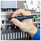 Плотный колпачок с клипом надёжно предотвращает высыхание. Цвет колпачка соответствует цвету чернил. Круглый корпус маркера диаметром 14 мм выполнен из пластика.