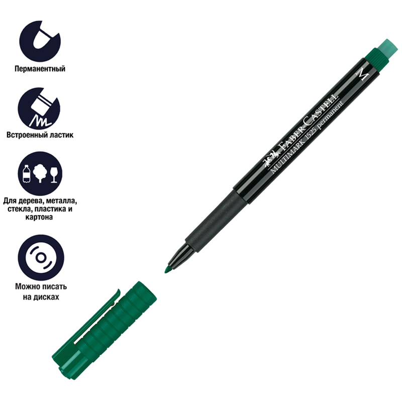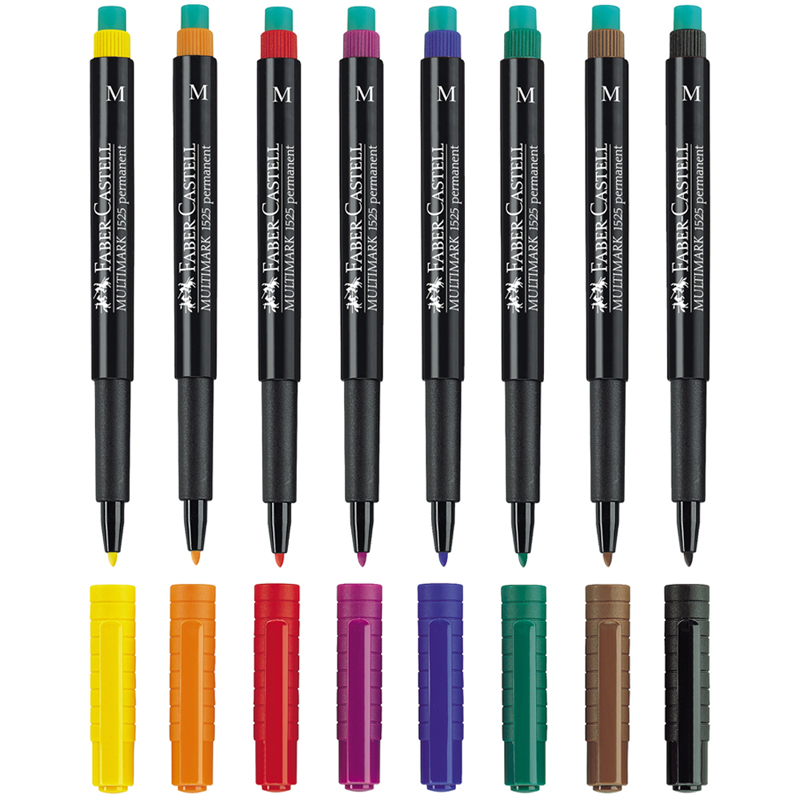 Универсальные перманентные маркеры Multimark permanent M от легендарного немецкого производителя Faber-Castell. Диаметр пишущего узла составляет 1 мм, толщина линии письма - 1 мм. Изделия идеально подходят для дерева, металла, стекла, пластика и картона. Чернила также устойчивы к морозу. Изделия имеют прочный колпачок, который защищает пулевидный прочный наконечник диаметром 1 мм от деформации. Специальный встроенный ластик способен полностью удалять линии написанные маркером практически со всех гладких поверхностей. Круглая форма корпуса добавляет удобства при работе с изделиями. Набор состоит из 8 цветов: красного, чёрного, зелёного, синего, оранжевого, коричневого, жёлтого, фиолетового. Все маркеры упакованы в пластиковый чехол.<br/>• Цвет чернил: ассорти;<br/>• Тип чернил: стойкие;<br/>• Толщина линии письма: 1 мм;<br/>• Цвет корпуса: чёрный;<br/>• Количество штук в упаковке: 8;<br/>• Тип упаковки: пластиковый чехол.