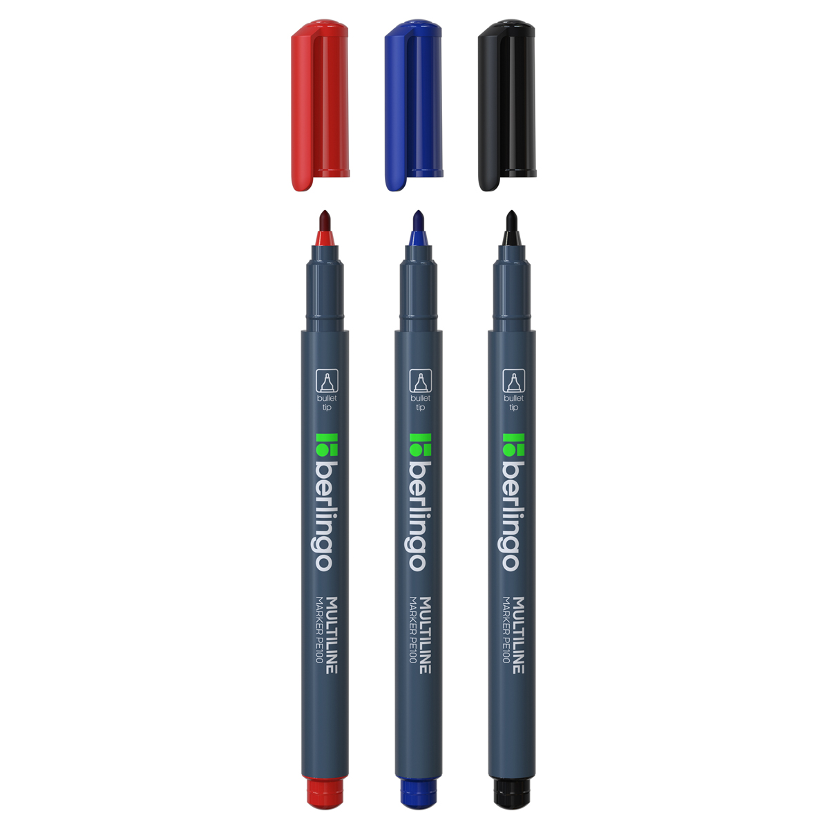 Маркеры подходят для письма на любых поверхностях. Чернила на спиртовой основе. Плотный колпачок с клипом надежно предотвращает высыхание. Цвет колпачка соответствует цвету чернил. Закругленный пишущий узел. Ширина линии - 1 мм. Длина непрерывной линии - 900 м. Набор 3 цвета, упаковка в PET-бокс с европодвесом.