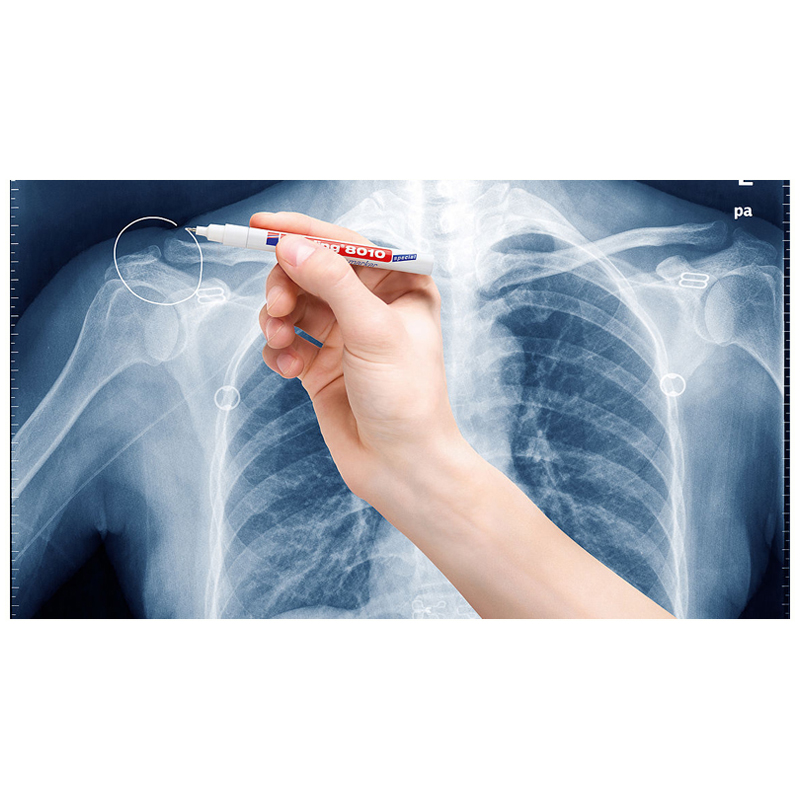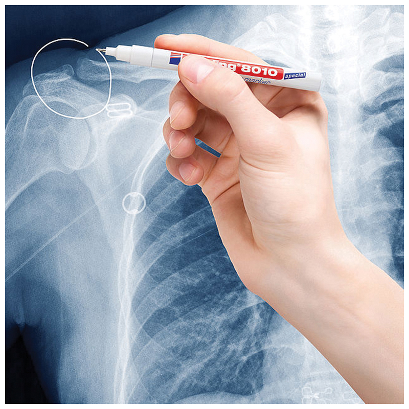 Когда на фотографическом материале, например, на рентгеновском или компьютерно-томографическом снимке требуется с хирургической точностью выделить какие-либо участки, маркер для рентгена edding 8010 станет верным выбором. Этот маркер со сверхтонким наконечником и со сверхводо- и светостойкими чернилами позволит избежать множества хлопот тем, кто ежедневно спасает жизни