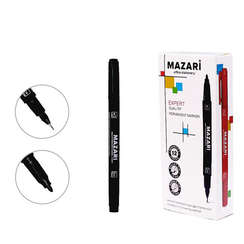 Маркер " Mazari " Expert черный 0,5-1,5мм двухсторонний, пулевидный/линер, перманентный