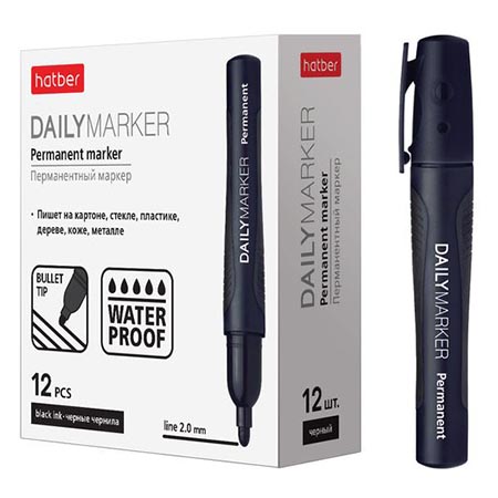 Маркер " Hatber " Daily черный 2мм пулевидный наконечник перманентный