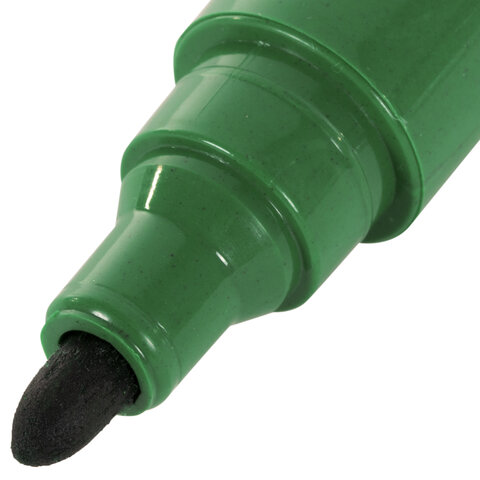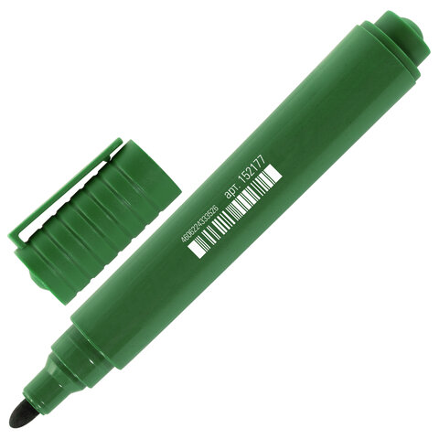 Маркер перманентный зеленого цвета обладает круглым корпусом, диаметр которого 17 мм и длина 133 мм. Толщина линии письма - 3 мм. Особая нестираемая основа перманентного маркера обеспечивает такие качества, как стойкость к воздействию воды, низких и высоких температур. Благодаря спиртовой основе чернила быстро сохнут и не размазываются. Износостойкий наконечник устойчив к повреждениям и обеспечивает экономный расход чернил. Изделие не перезаправляется. Плотный колпачок с клипом предотвращает высыхание наконечника и чернил. Цвет корпуса и колпачка соответствует цвету чернил.