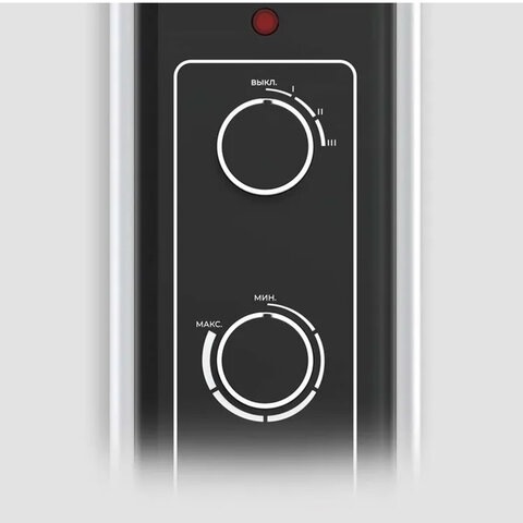 Управление осуществляется с помощью механического переключателя со световым индикатором. Для комфортного обогрева пространства можно выбрать необходимую мощность и установить температурный режим.