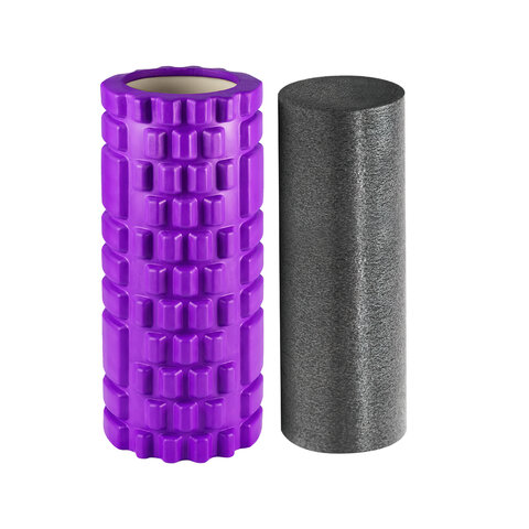 В наборе содержится два массажных ролика. Внешний фигурный ролик размером 33х14 см из мягкого, нескользящего материала EVA содержит на своей поверхности специальные выступы, которые точечно воздействуют на мышцы во время массажа роликом или давления на ролик весом собственного тела. Внутренний гладкий ролик (цилиндр) размером 33х10 см изготовлен из EVA. Гладкий ролик используется не только для массирования и проработки мышц, но и в качестве спортивного снаряда при выполнении упражнений с опорой и поддержанием равновесия. Ролики можно использовать вместе или по отдельности.
