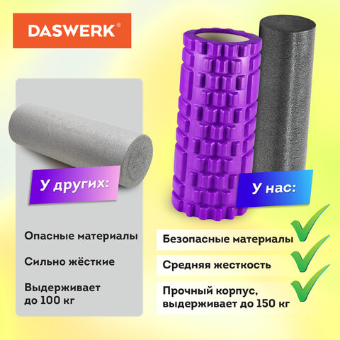 Ролик массажный для йоги и фитнеса, 33х14 см, EVA, фиолетовый, с выступами, DASWERK, 680023