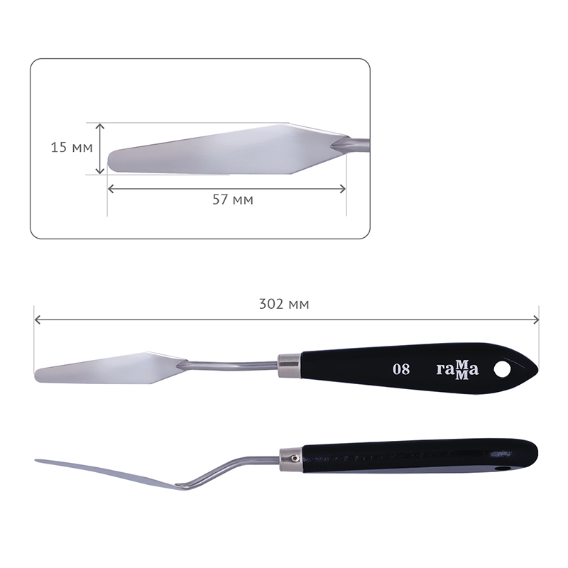 размер рабочей поверхности мастихина-67мм*14мм