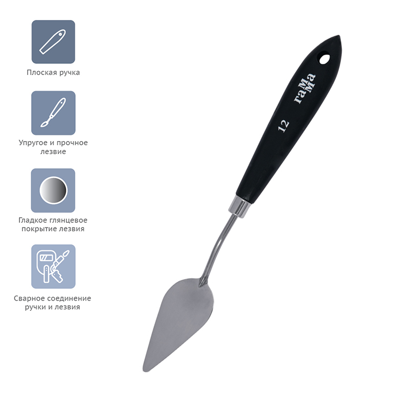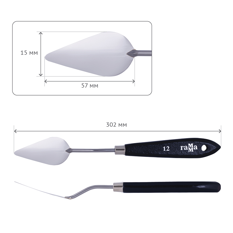 Паяный мастихин из нержавеющей стали с удобной плоской ручкой из натурального бука. Сварное соединение ручки и лезвия дает больший угол наклона мастихина к холсту, снижая вероятность случайного касания и смазывания краски.<br/>Форма лезвия — ромб.<br/>размер рабочей поверхности мастихина-61мм*28мм