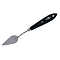 Паяный мастихин из нержавеющей стали с удобной плоской ручкой из натурального бука. Сварное соединение ручки и лезвия дает больший угол наклона мастихина к холсту, снижая вероятность случайного касания и смазывания краски.