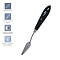 Паяный мастихин из нержавеющей стали с удобной плоской ручкой из натурального бука. Сварное соединение ручки и лезвия дает больший угол наклона мастихина к холсту, снижая вероятность случайного касания и смазывания краски.