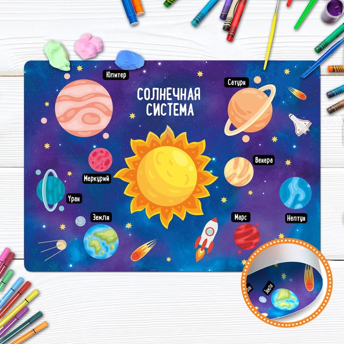 Подкладка настольная А3 (430 х 290 мм), ErichKrause "Space Animals", пластиковая