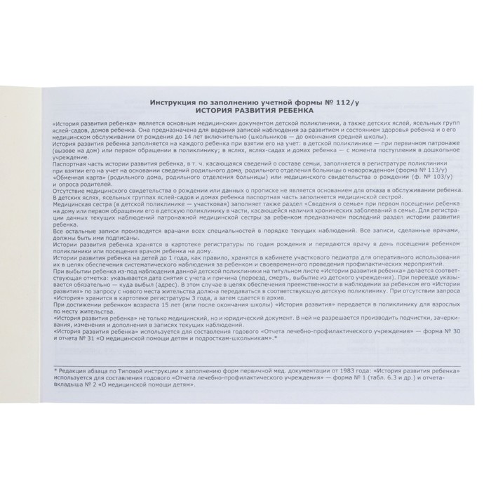Медицинская карта ребенка А5, 60 листов. Форма №112/у «Лисенок»