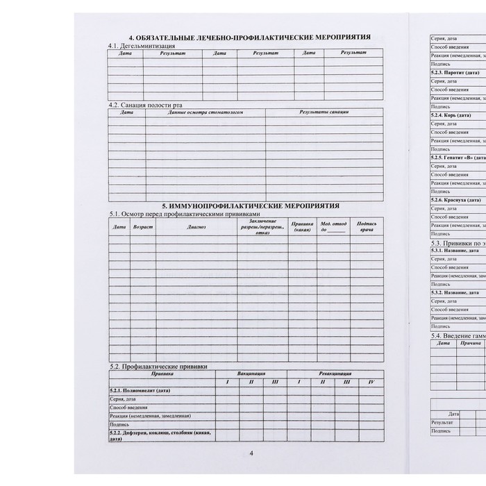 Сертификат о профилактических прививках А6, 12 листов, форма 156/у-93