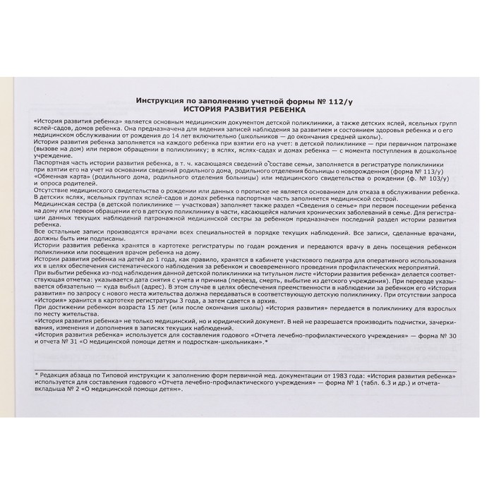 Медицинская карта ребенка А5, 60 листов. Форма №112/у «Лисенок»