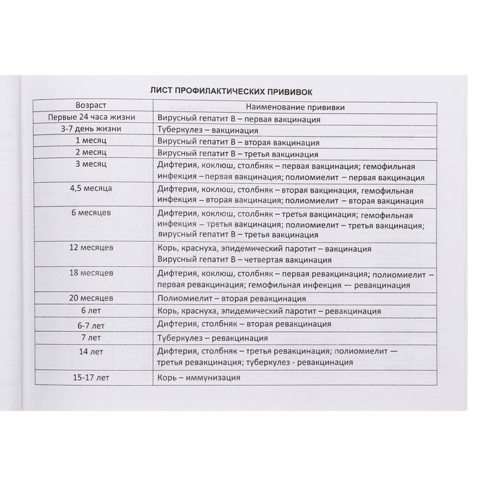 Сертификат о профилактических прививках А6, 12 листов, форма 156/у-93