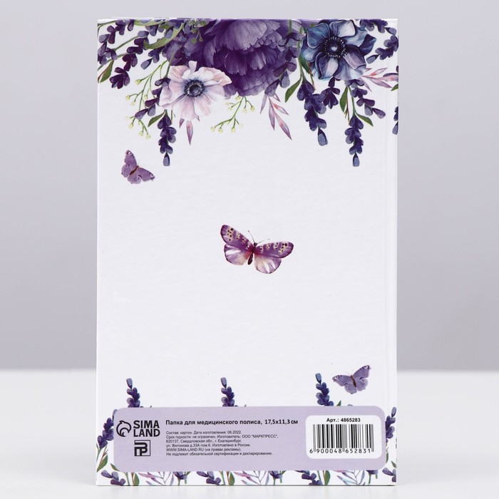 Папка для медицинского полиса «Цветочная», 17,5 х 11,3 см.