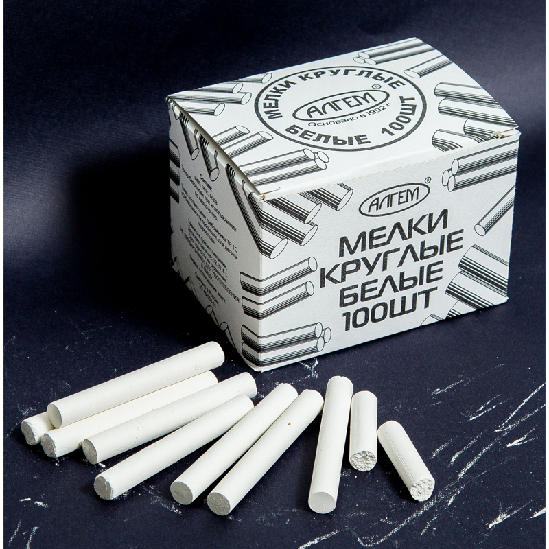 Белый мел для классных и аудиторных досок. Подходит для рисования на асфальте. Разделен на бруски.
