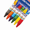Палитра состоит из 6 ярких и насыщенных цветов. Полностью безопасны в использовании, не токсичны и не имеют резкого запаха. Благодаря своему составу мелки пишут мягко, и ребенку не придется прикладывать усилия в процессе рисования. Круглая форма корпуса и диаметр 8 мм делают их удобными для тренировки руки к письму у дошкольников и детей младшего школьного возраста, формируют навык правильного захвата, снижают нагрузку на кисти рук. Каждый мелок завернут в бумажную этикетку, что предохраняет от загрязнений, снижает скольжение, увеличивает прочность. Восковые мелки упакованы в картонную коробку с европодвесом.