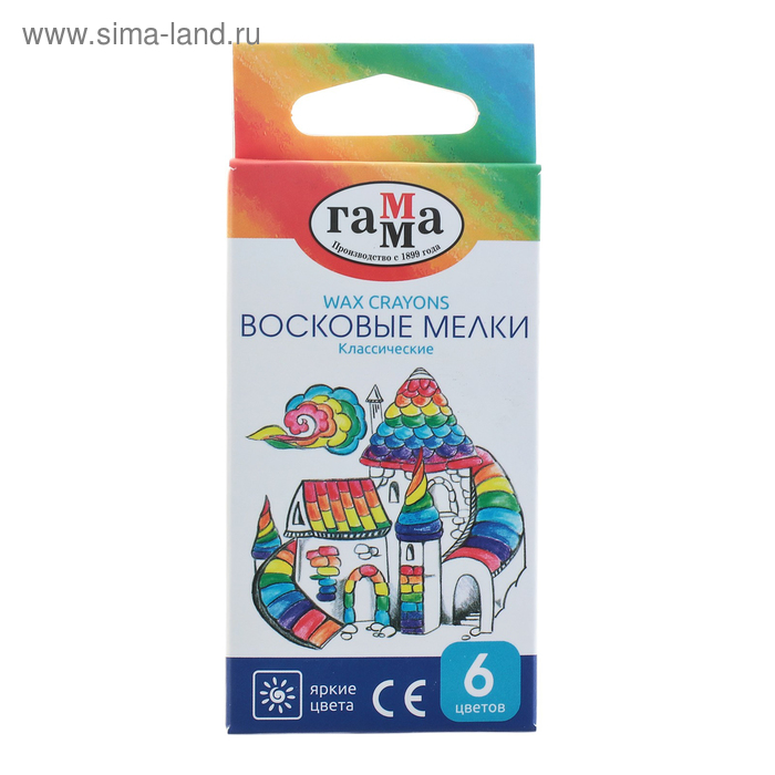 Восковые мелки, 6 цветов «Школьные»