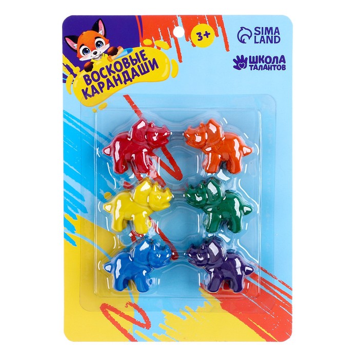 Восковые мелки, 6 цветов «Школьные»