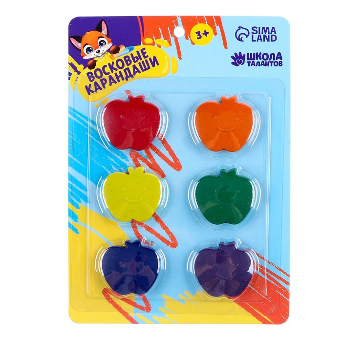Восковые мелки, 6 цветов «Школьные»