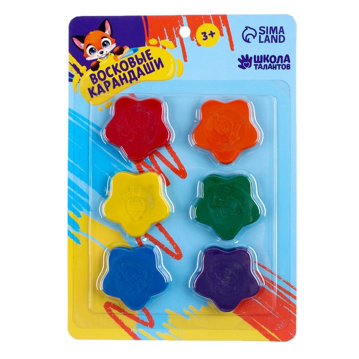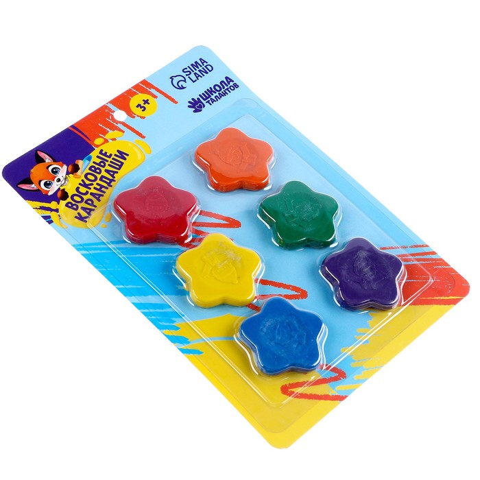 Восковые мелки, 6 цветов «Школьные»