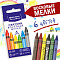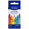 Палитра состоит из 6 ярких и насыщенных цветов. Полностью безопасны в использовании, не токсичны и не имеют резкого запаха. Благодаря своему составу мелки пишут мягко, и ребенку не придется прикладывать усилия в процессе рисования. Круглая форма корпуса и диаметр 8 мм делают их удобными для тренировки руки к письму у дошкольников и детей младшего школьного возраста, формируют навык правильного захвата, снижают нагрузку на кисти рук. Каждый мелок завернут в бумажную этикетку, что предохраняет от загрязнений, снижает скольжение, увеличивает прочность. Восковые мелки упакованы в картонную коробку с европодвесом.