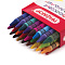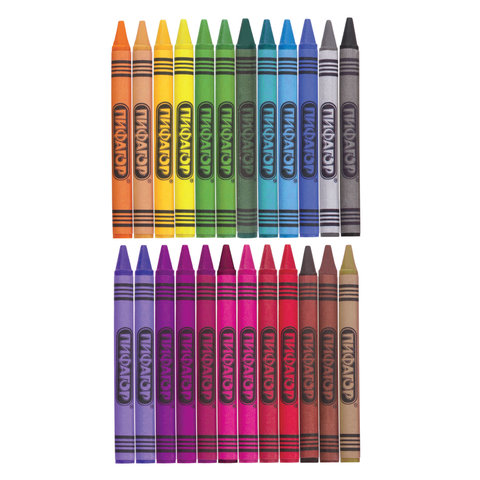 Палитра состоит из 24 ярких и насыщенных цветов. Полностью безопасны в использовании, не токсичны и не имеют резкого запаха. Благодаря своему составу мелки пишут мягко, и ребенку не придется прикладывать усилия в процессе рисования. Круглая форма корпуса и диаметр 8 мм делают их удобными для тренировки руки к письму у дошкольников и детей младшего школьного возраста, формируют навык правильного захвата, снижают нагрузку на кисти рук. Каждый мелок завернут в бумажную этикетку, что предохраняет от загрязнений, снижает скольжение, увеличивает прочность. Восковые мелки упакованы в картонную коробку с европодвесом.