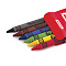 Палитра состоит из 6 ярких и насыщенных цветов. Полностью безопасны в использовании, не токсичны и не имеют резкого запаха. Благодаря своему составу мелки пишут мягко, и ребенку не придется прикладывать усилия в процессе рисования. Круглая форма корпуса и диаметр 8 мм делают их удобными для тренировки руки к письму у дошкольников и детей младшего школьного возраста, формируют навык правильного захвата, снижают нагрузку на кисти рук. Каждый мелок завернут в бумажную этикетку, что предохраняет от загрязнений, снижает скольжение, увеличивает прочность. Восковые мелки упакованы в картонную коробку с европодвесом.