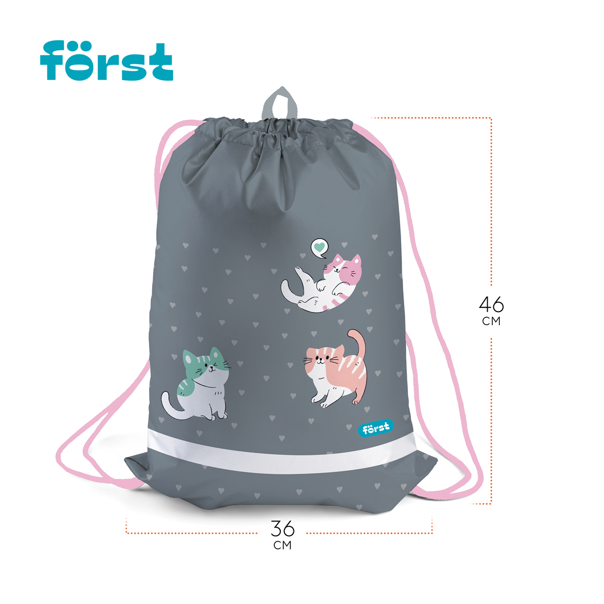 Мешок для обуви Först с широкими шнурками, светоотражающей полосой и вентиляционной сеточкой сзади. Размер изделия 360*460 мм. Изготовлен из прочного полиэстера. Благодаря петле мешок удобно вешать. Подходит как для обуви, так и для спортивной формы.<br/>• Размер: 360*460 мм;<br/>• Материал: полиэстер;<br/>• Количество отделений: 1;<br/>• Световозвращающие элементы: да;<br/>• Пол: женский.