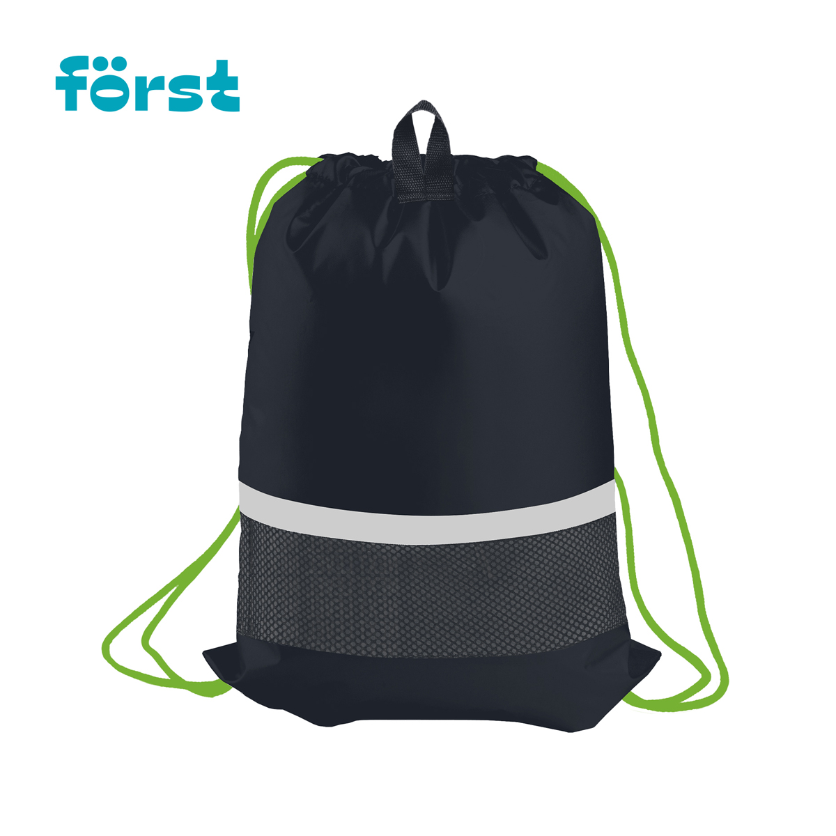 Мешок для обуви Först с широкими шнурками, светоотражающей полосой и вентиляционной сеточкой сзади. Размер изделия 360*460мм. Изготовлен из прочного полиэстера. Благодаря петле мешок удобно вешать. Подходит как для обуви, так и для спортивной формы.