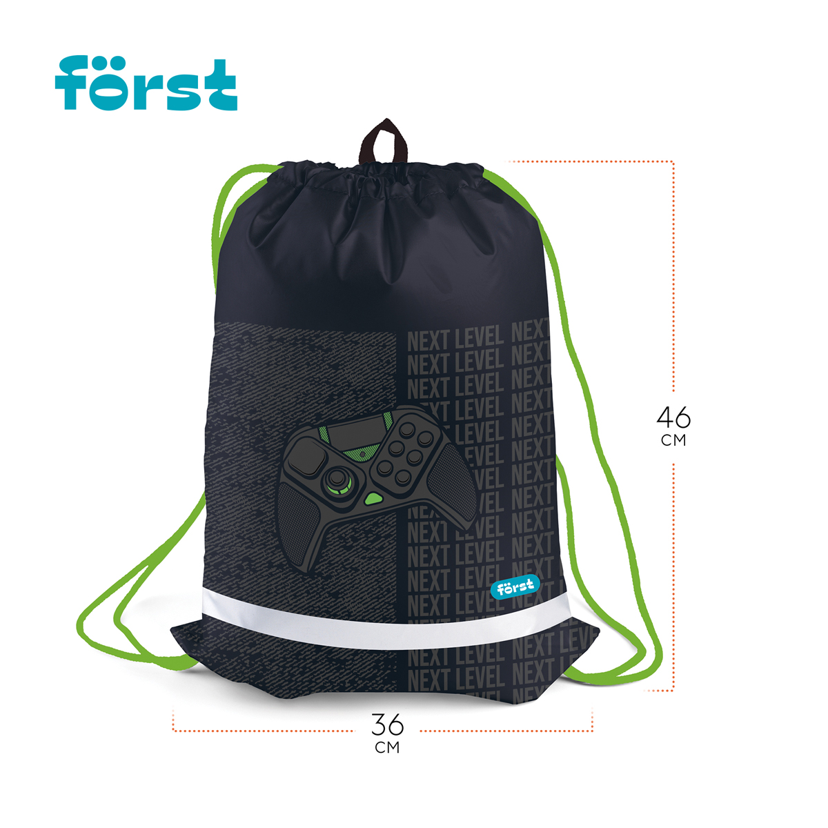 Мешок для обуви Först с широкими шнурками, светоотражающей полосой и вентиляционной сеточкой сзади. Размер изделия 360*460мм. Изготовлен из прочного полиэстера. Благодаря петле мешок удобно вешать. Подходит как для обуви, так и для спортивной формы.<br/>• Размер: 360*460 мм;<br/>• Материал: полиэстер;<br/>• Количество отделений: 1;<br/>• Световозвращающие элементы: да;<br/>• Пол: мужской.