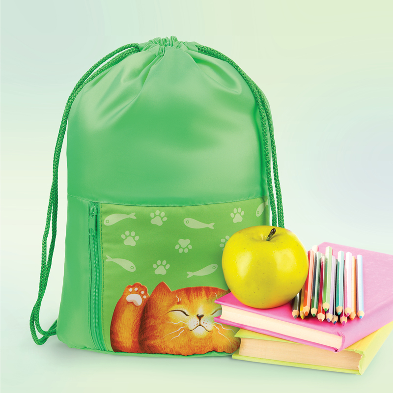 Мешок для обуви «Мульти-Пульти» Lazy Cat оснащён затягивающимися шнурками, который позволит нести мешок как в руках, так и за спиной. Размер изделия 340*420 мм. Модель изготовлена из полиэстера и имеет дополнительный карман на молнии для полезных мелочей. Также во внутреннем пространстве мешка предусмотрен кармашек для вставки собственных данных (ФИО, телефон, класс). Практично и позволяет найти владельца в случае утери. Индивидуальная упаковка в пакет.