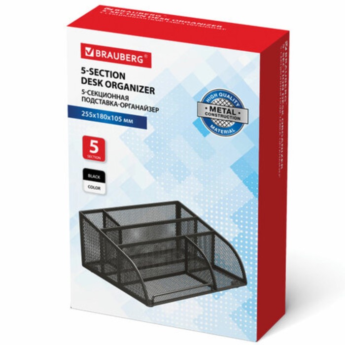 Подставка для канцелярских принадлежностей, 5 отделений, сетка, металл, чёрная