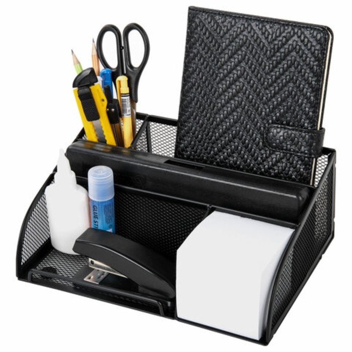 Подставка для канцелярских принадлежностей, 7 отделений, сетка, металл, чёрная