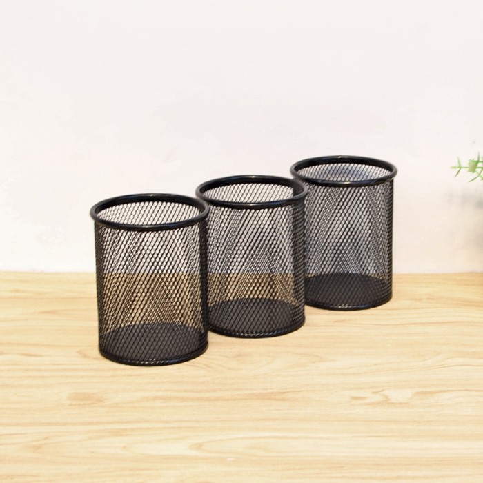 Стакан для пишущих принадлежностей круглый, металлическая сетка, синий