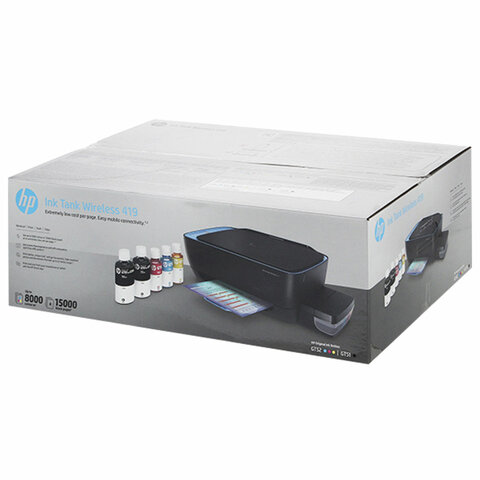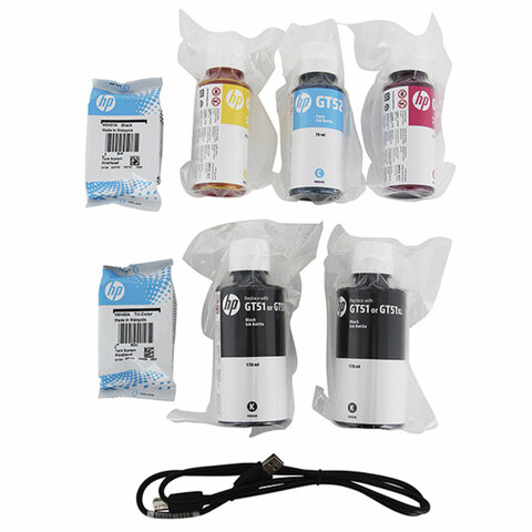 В комплект поставки входят 2 бутылочки черных чернил и по бутылочке цветных, что обеспечивает печать до 15 000 черно-белых отпечатков и до 8 000 цветных.
