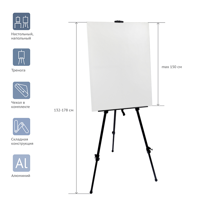 • Высота мольберта: 132 (178) см;