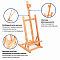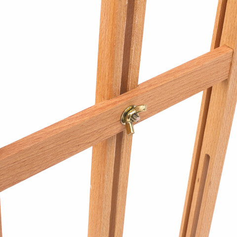 Изготовлен из натурального бука, пропитанного маслом. Мольберт настольный прост в установке, верхнее крепление обеспечивает жесткую фиксацию холста. Максимальная высота размещаемого холста - 53 см. Мачта неподвижная, свободный угол наклона позволяет зафиксировать положение мачты с помощью винта-барашка.