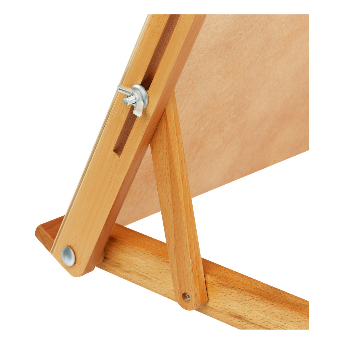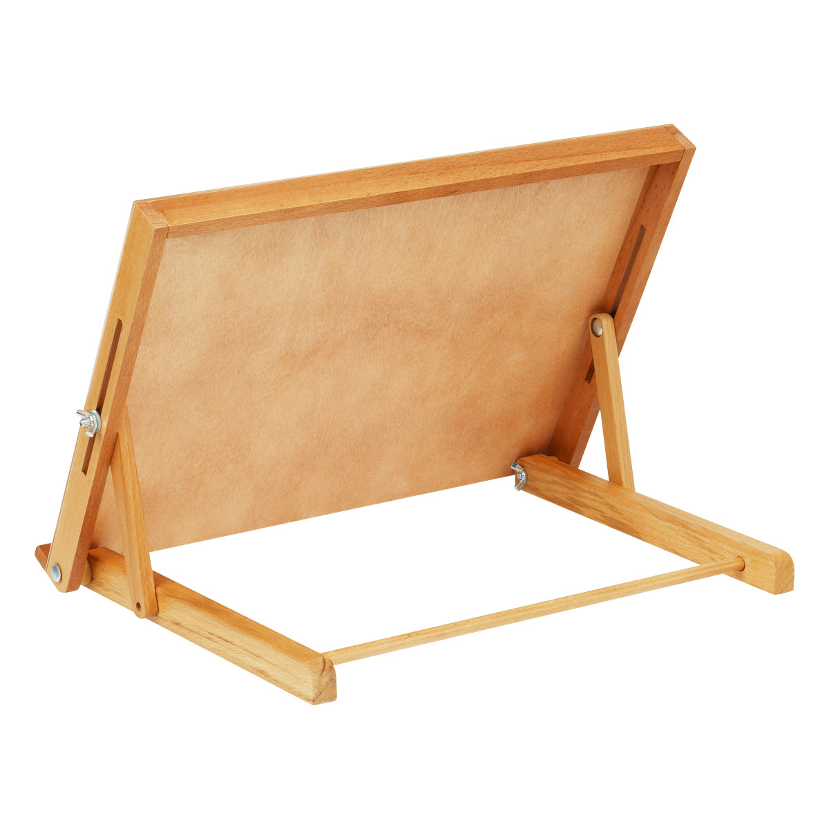 Настольный планшетный мольберт с регулируемым углом наклона Гамма "Студия" отлично подходит для работы с малыми и средними форматами, максимальный размер бумаги - А3. Планшет мольберта представляет собой жесткую основу, за счет этого на мольберте легко можно закрепить бумагу малярным скотчем или зажимами. Поверхность планшета хорошо отшлифована и подходит даже для тонкой бумаги. Три положения наклона мольберта помогут найти удобное положение для творчества.<br/>Мольберт удобно хранить в сложенном виде.<br/>Материал - бук.