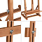 Верхний фиксатор регулируется по высоте и надёжно удерживает холст. Изготовлен из лакированного бука. Пластиковые опоры на основании препятствуют скольжению. Мольберт удобно хранить в сложенном виде. Имеет складную конструкцию.