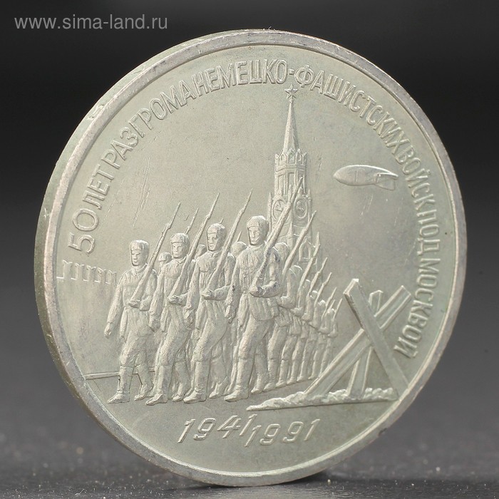 Монета "3 рубля 1991 года Разгром фашистов под Москвой