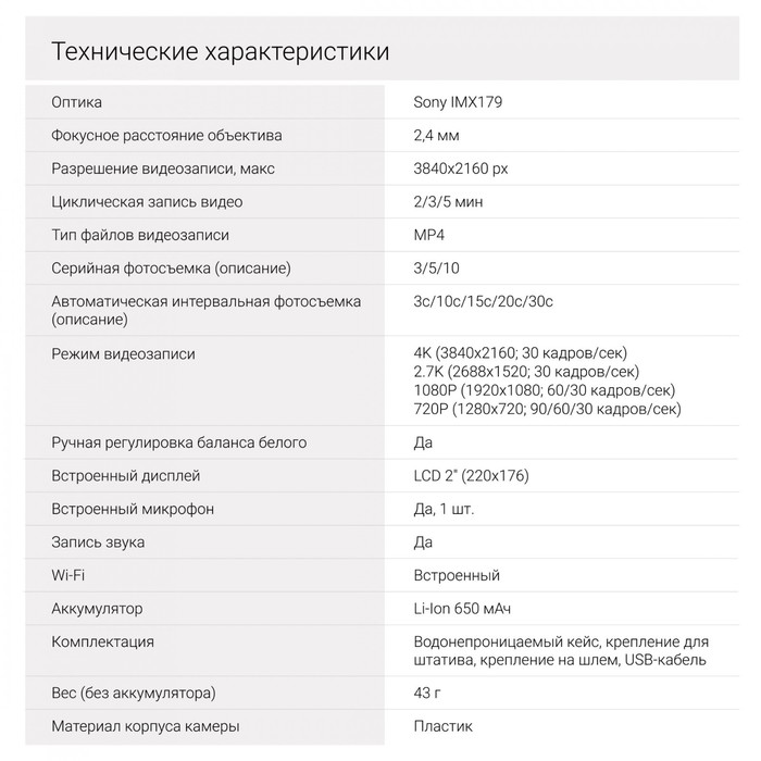 Экшн-камера Digma DiCam 520, Sony IMX386, 16 МП, серая