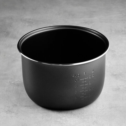 Чаша объемом 5 л с выгравированной шкалой внутри и антипригарным покрытием. Теперь можно готовить без масла, без подгорания и прилипания продуктов к поверхности чаши, даже жареные блюда будут диетическими, но вкусными.