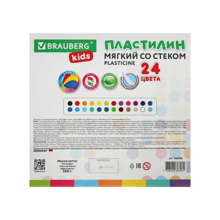 Пластилин мягкий на восковой основе ErichKrause "Baby" 18 цветов, со стеком, 234 г, в коробке