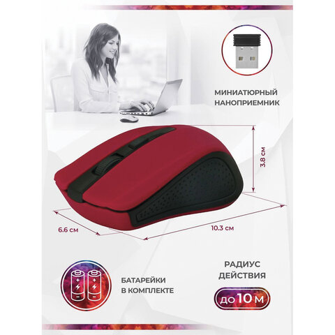 Увеличенный радиус действия беспроводной связи (10 м) обеспечивает большую свободу действий. 3 режима разрешения мыши 800/1200/1600 dpi переключаются специальной кнопкой и позволяют быстро подстроить скорость курсора мышки под требуемые задачи. Удобная симметричная форма подходит для работы любой рукой. Питание - 2 батареи ААА."