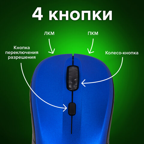 3 режима разрешения мыши 800-1200-1600 dpi переключаются специальной кнопкой и позволяют быстро подстроить скорость курсора мышки под требуемые задачи.