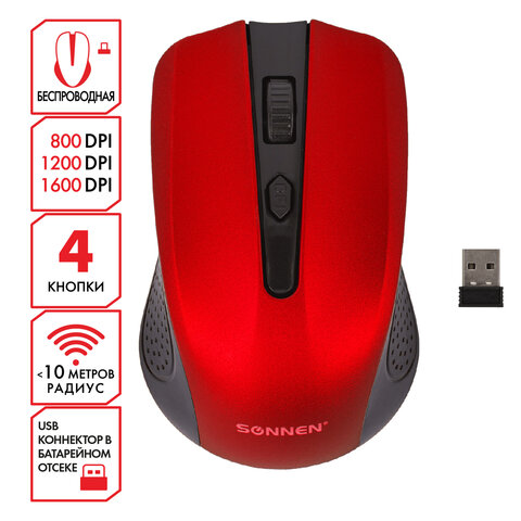 Мышь беспроводная USB, 800/1200/1600 dpi, 5 кнопок + колесо-кнопка, оптическая, SONNEN Q80, черная, 513945