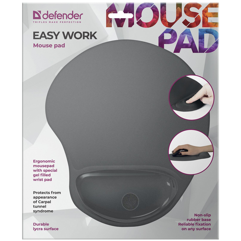 Коврик разработан для тех, кто много работает за компьютером. Имеет гелевую подушку под запястье. Покрыт тканью Lycra. Размер 260 х 225 х 5 мм.